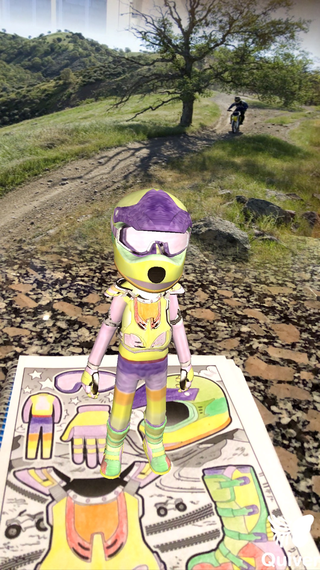 Esta ejemplificación de la realidad aumentada tiene mucho que ver con nuestra temática. La visibilidad de los motoristas es muy importante de cara a la seguridad vial en carretera. Los motoristas, al igual que el resto de vehículos a dos ruedas, son actores importantes de la vía. Con este ejemplo de realidad aumentada se les puede preguntar a los niños/as las partes de trajes que debe de llevar un motorista para proteger su seguridad en la carretera. Las respuestas que pueden dar son las siguientes: